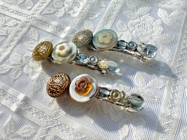 ご覧頂きありがとうございます♡ アンティークビーズをメインに 個性あふれる大ぶりバレッタ✳︎ シルバーやゴールドパーツで上品に仕上げました。 約8センチのバレッタなので、 毛量が多い方でも簡単にまとまります◎ 他のデザインと被らず 自分だけの特別なヘアアクセサリー。 【配送について】 ご注文いただいて、オーダー品を除き、5日以内に発送します。 お急ぎであれば相談してください。 【包装について】 ラッピングをご希望される場合は 商品選択欄からラッピング(+100円) を一緒にご購入ください。 【お得情報】 おまとめ買いで割引あり◎ プロフィールの詳細をご確認の上、 まとめ買い希望のお客様は購入される前に コメントください。
