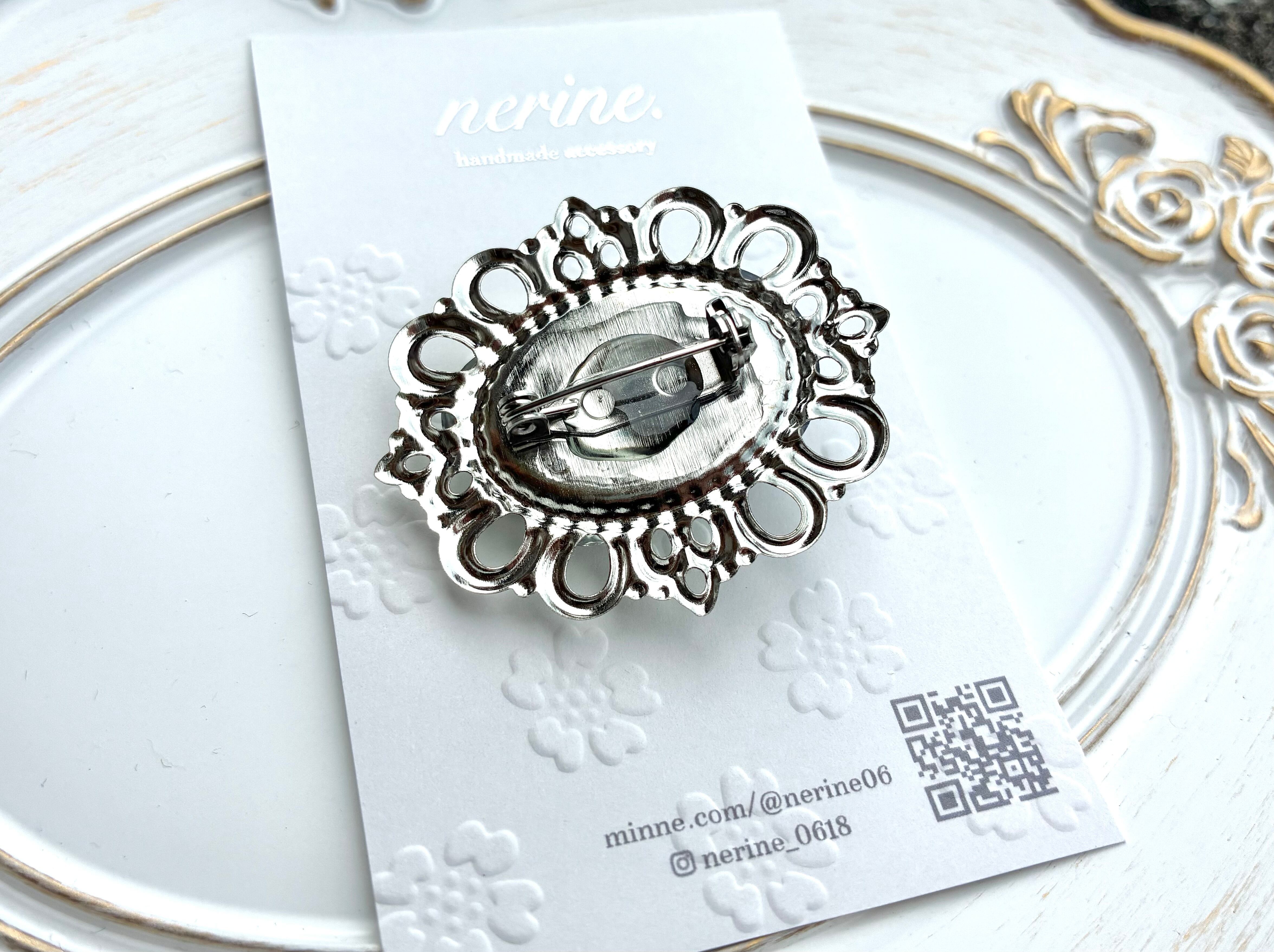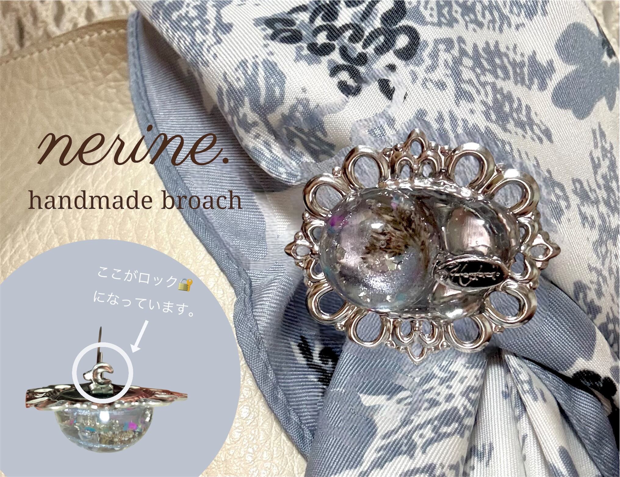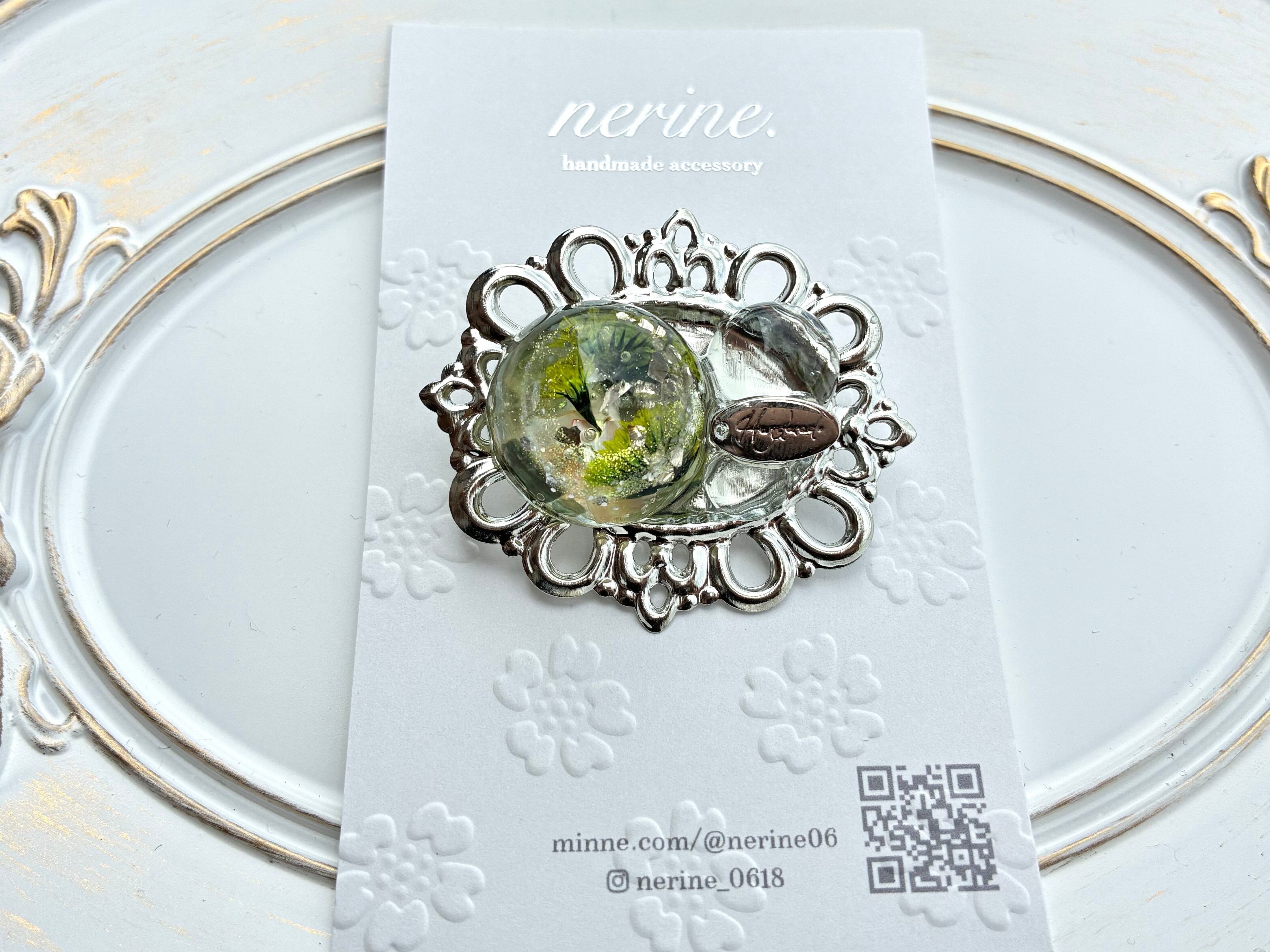 ドライフラワー、パール、レジン、クリアパーツ使用。