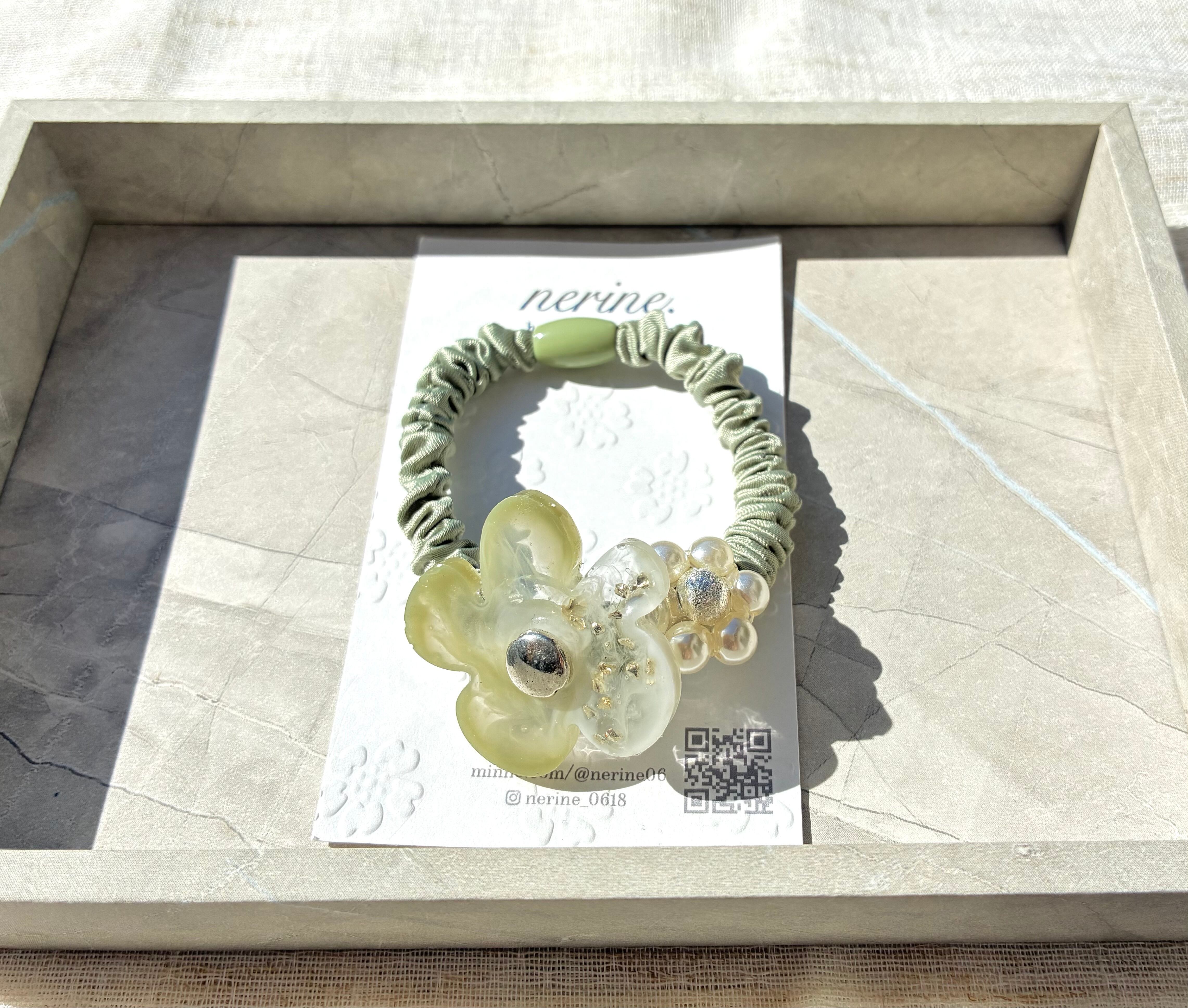 少し大ぶりで上品なお花のヘアゴムです*