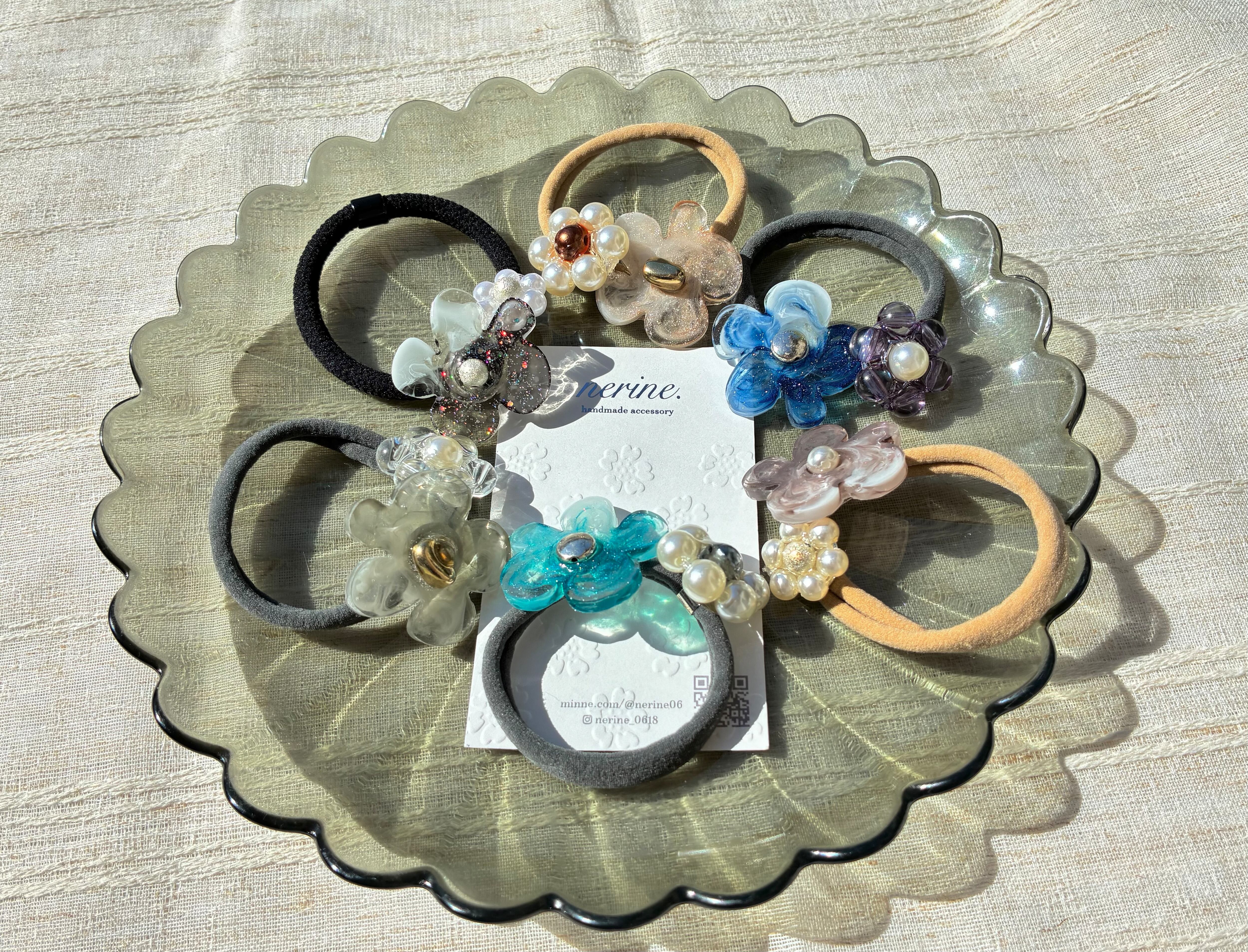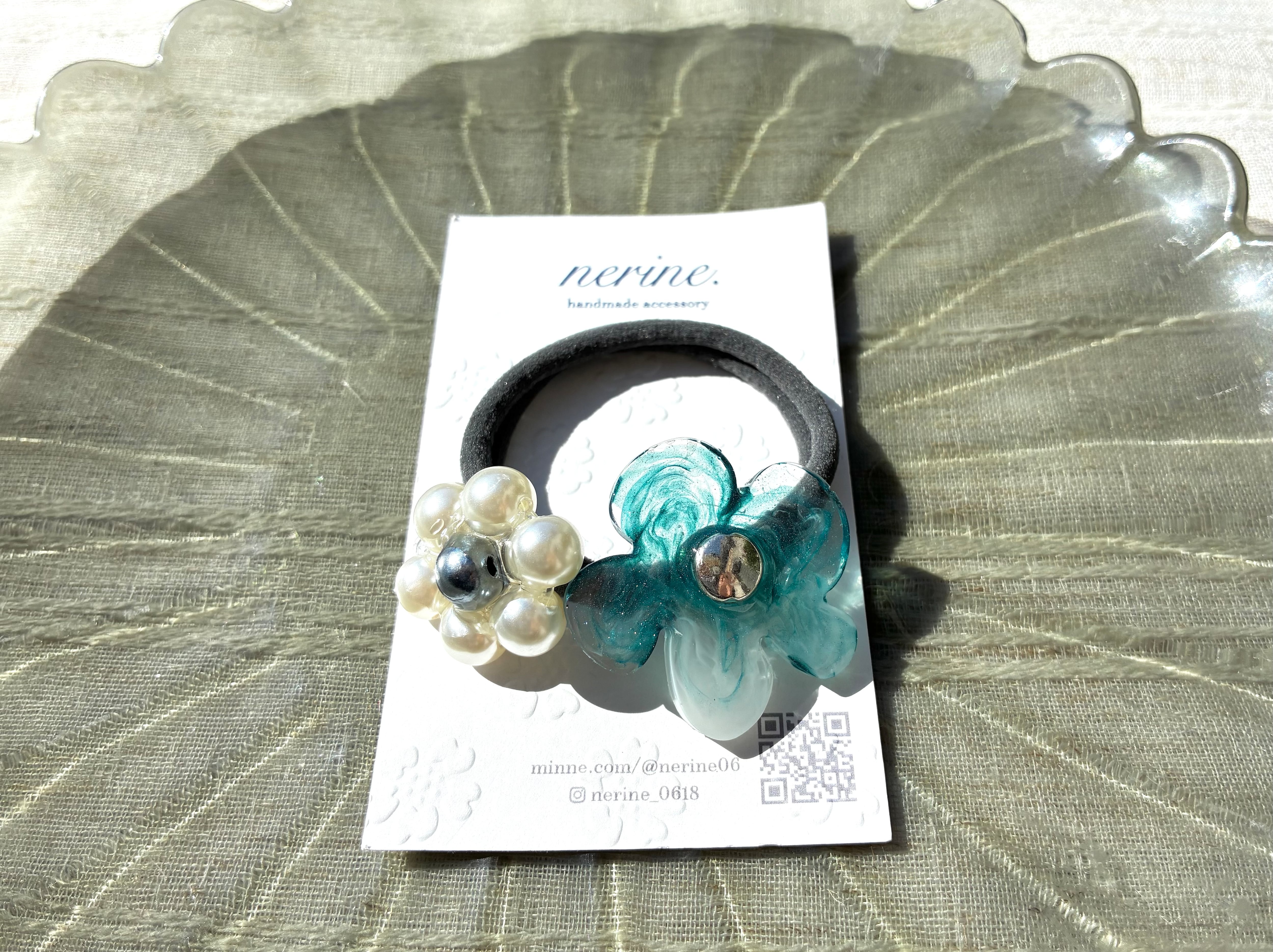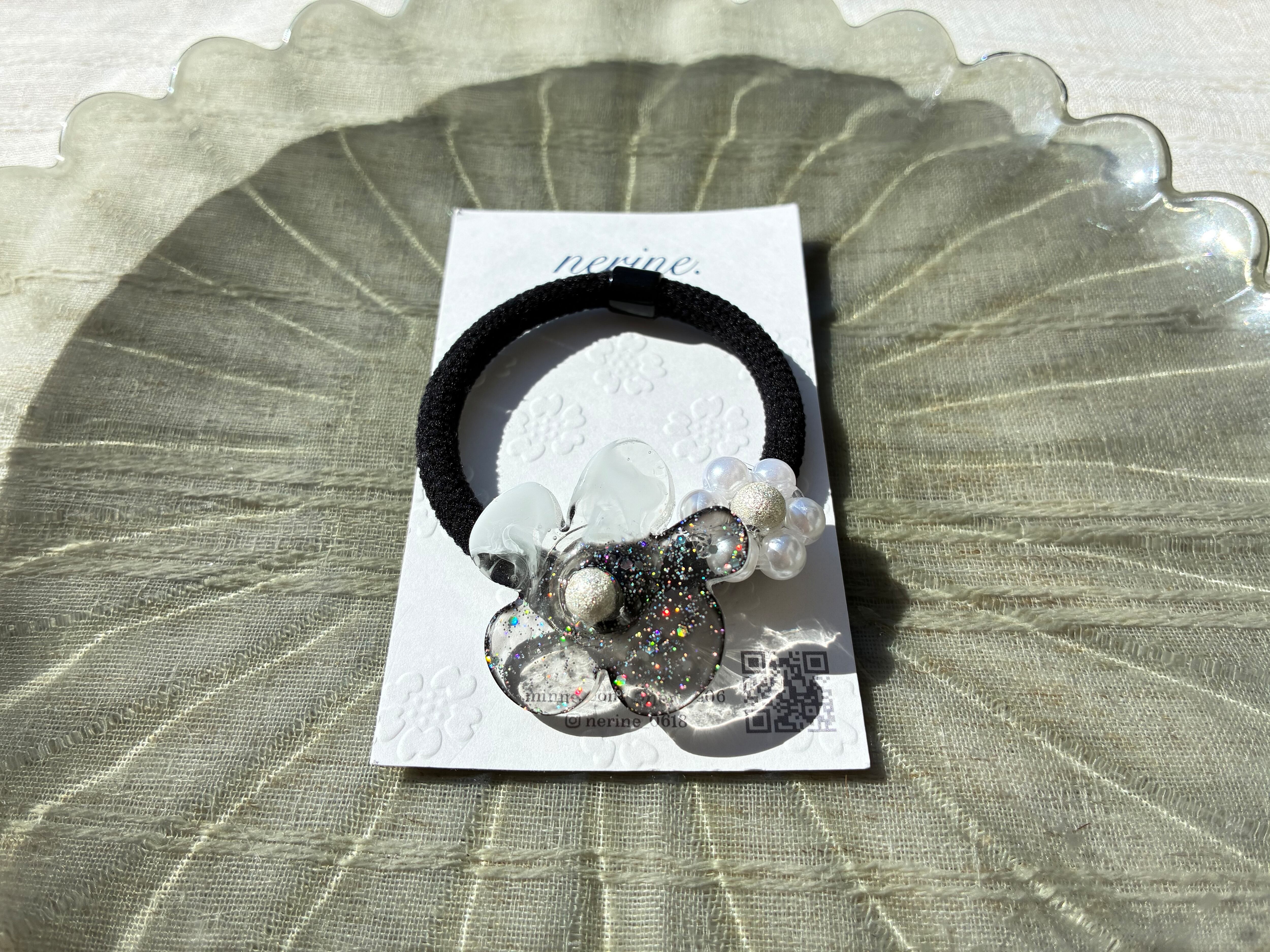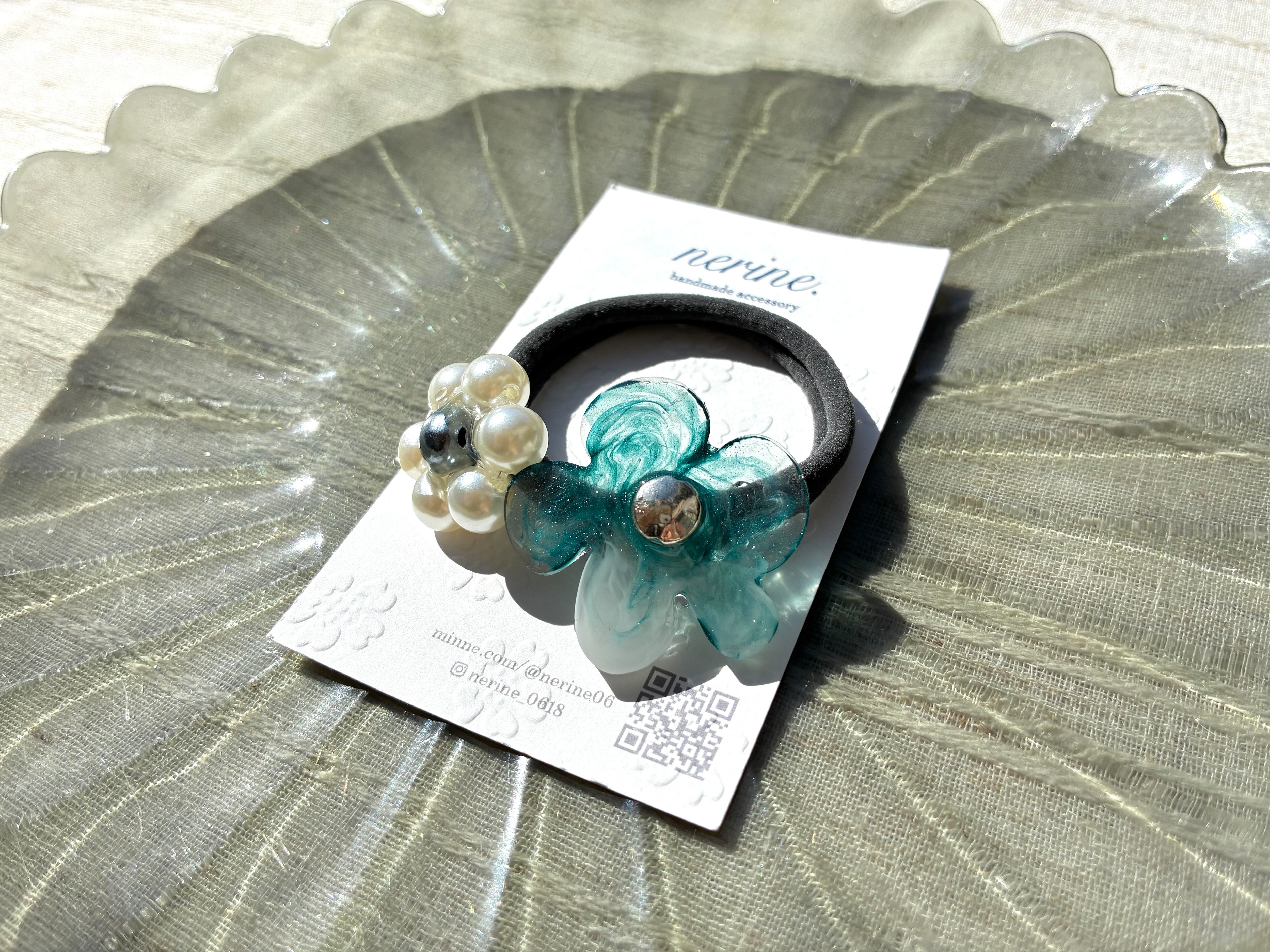 レジン、金属パーツ、ラメ、ビーズを使用。