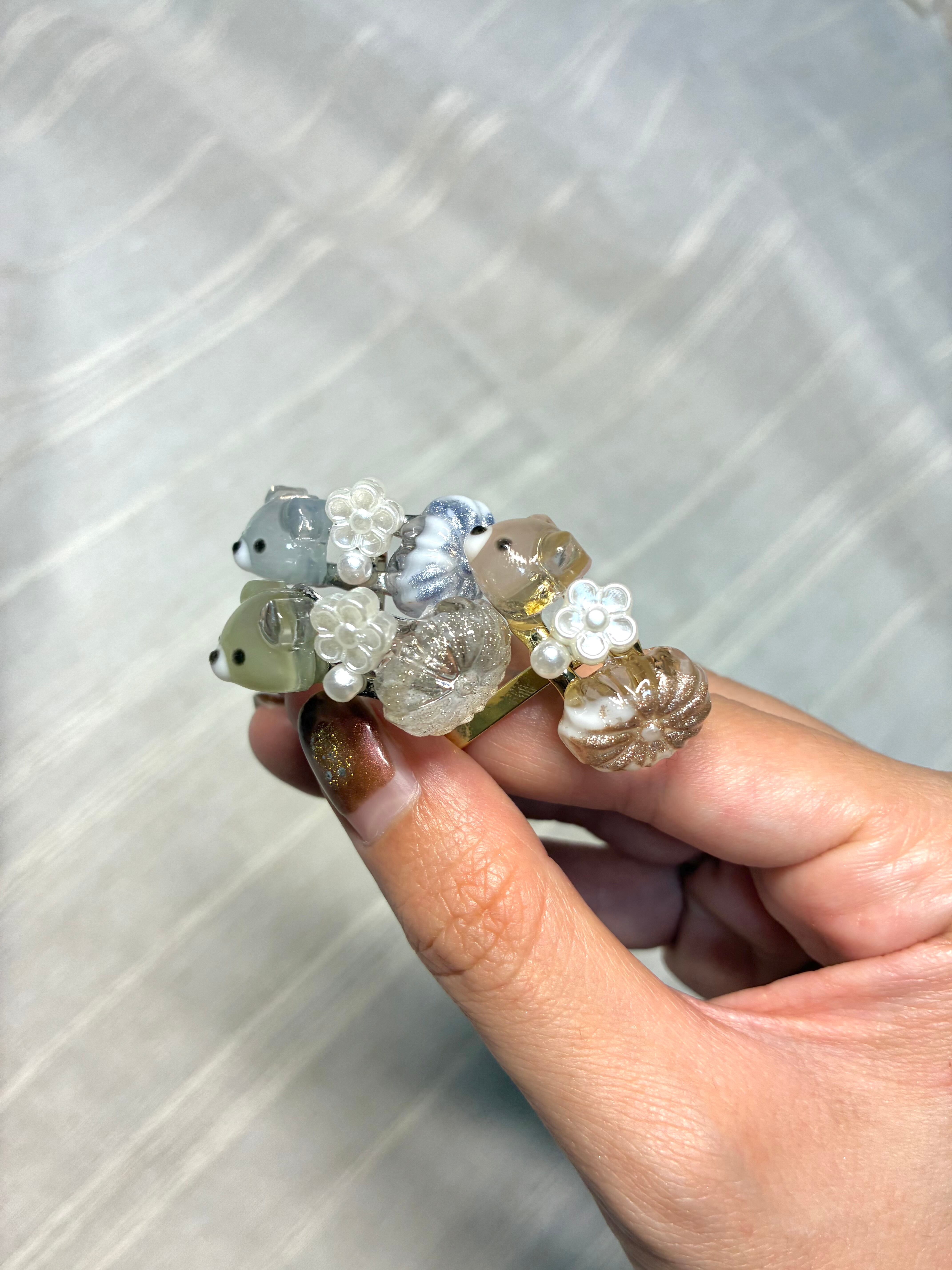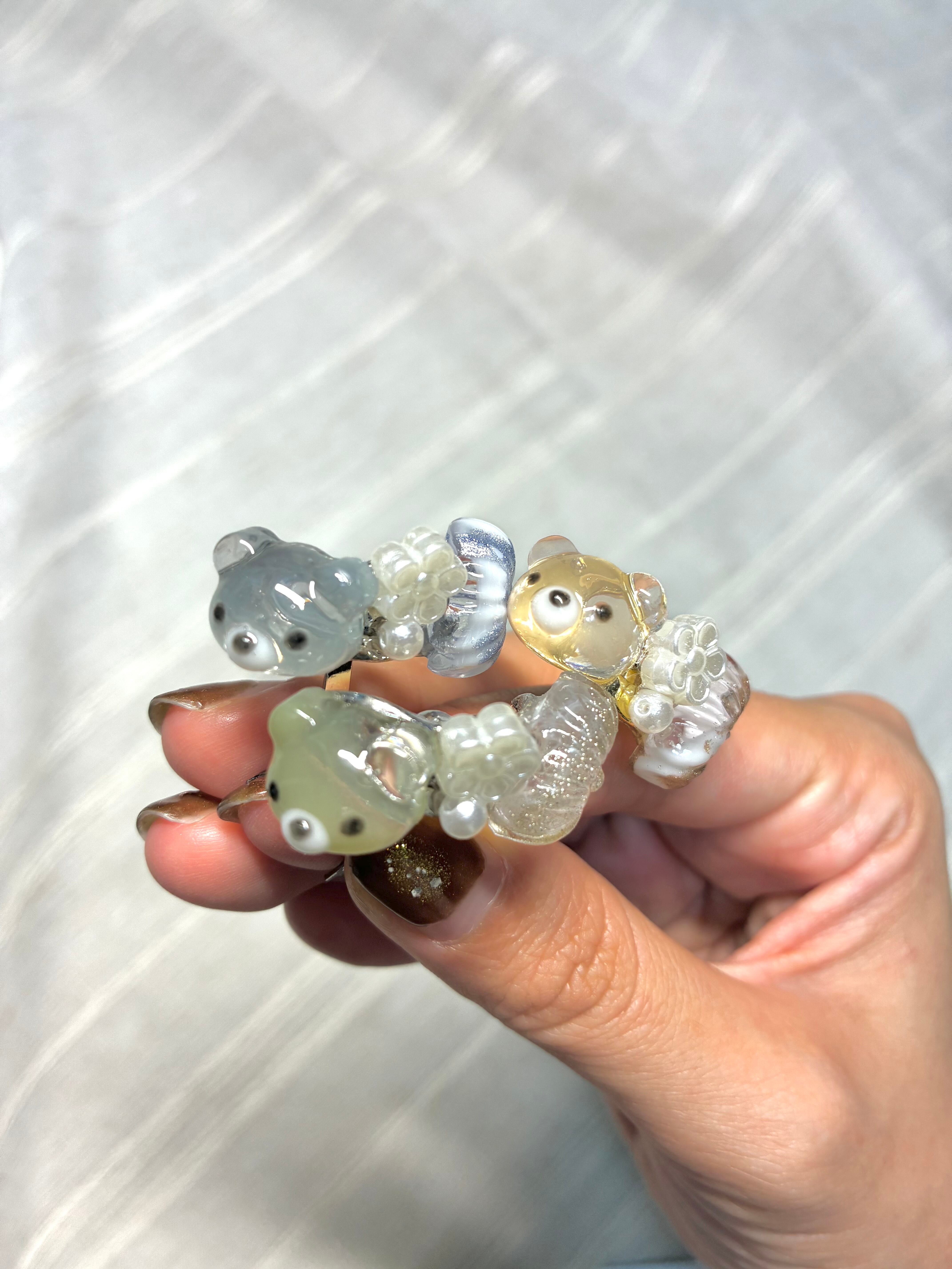 クリアなクマがワンポイントのポニーフックと