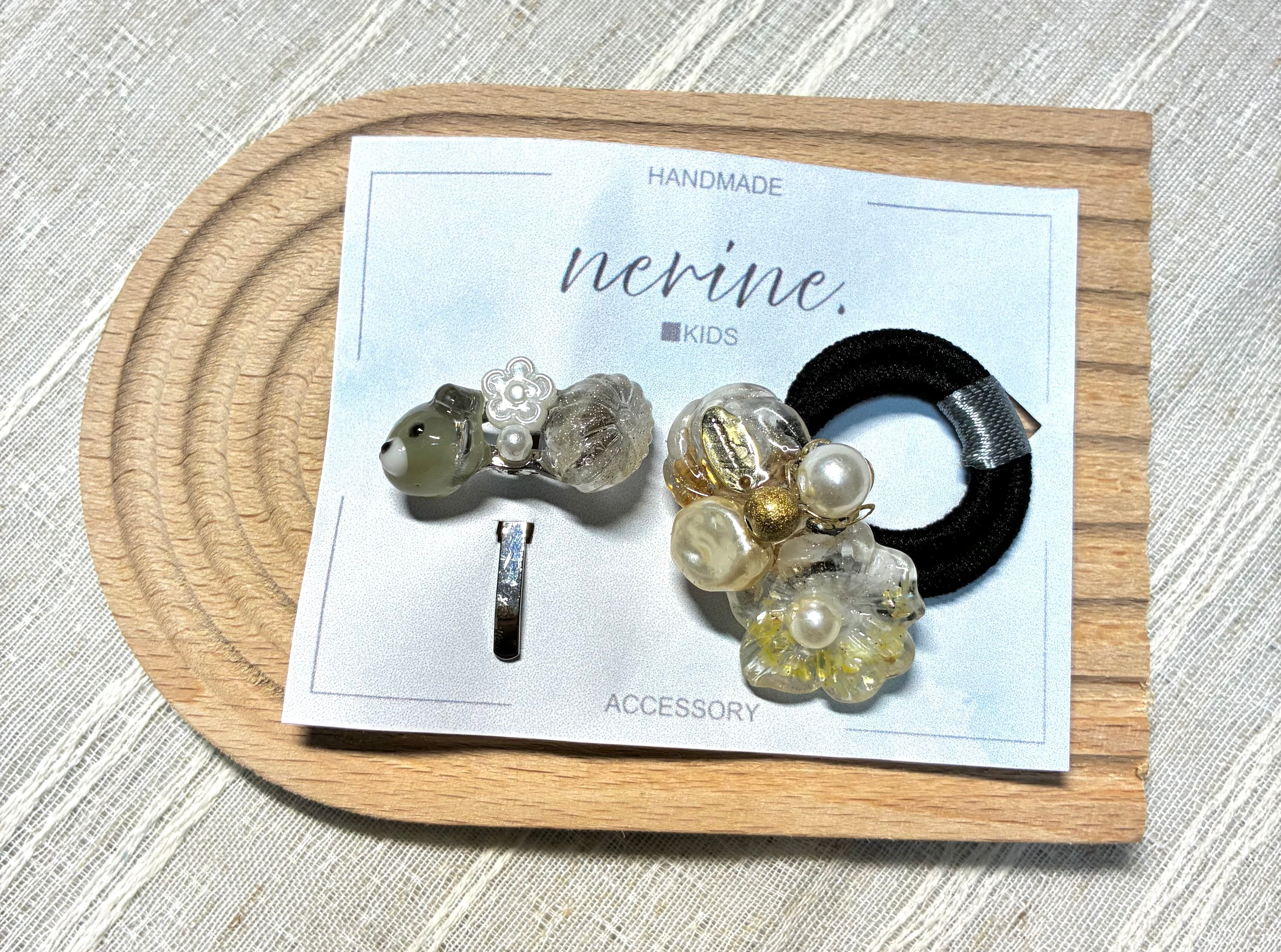 クマのポニーフックとヘアゴムのセット[お子様使用可能◎]