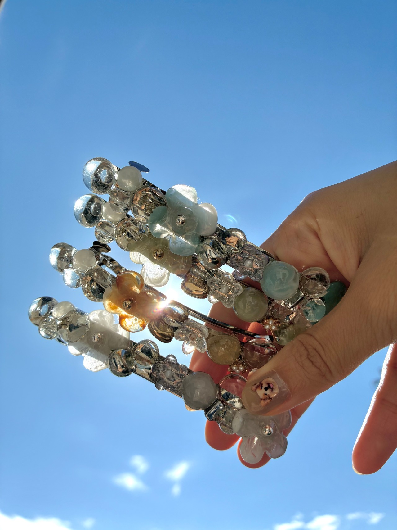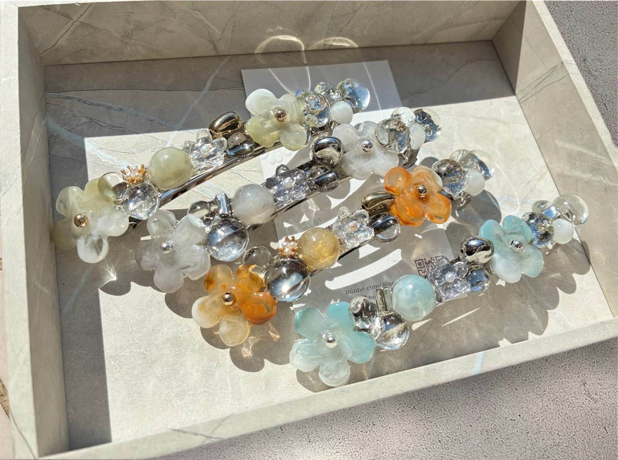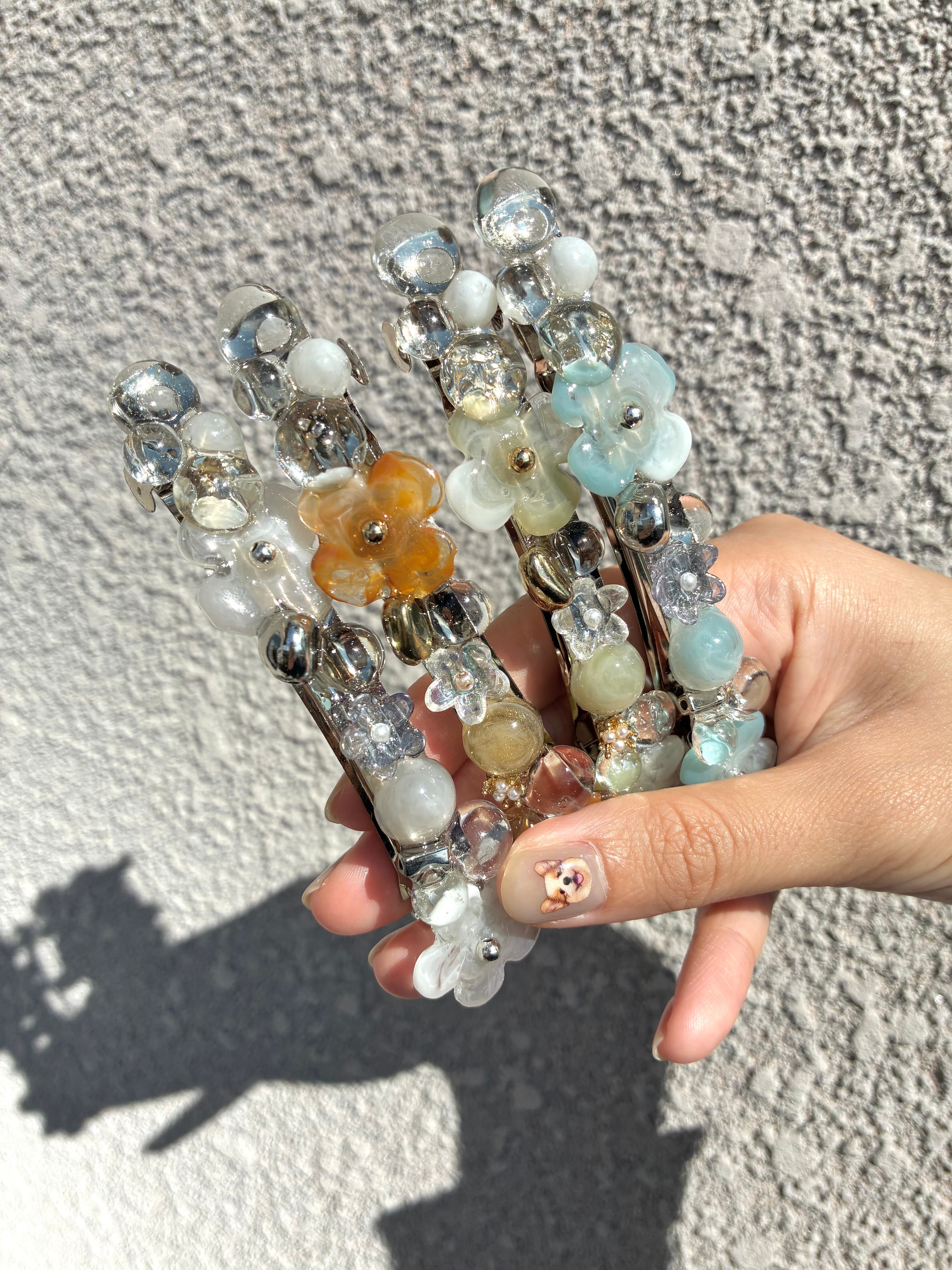ストーン、レジン、ビーズ使用。