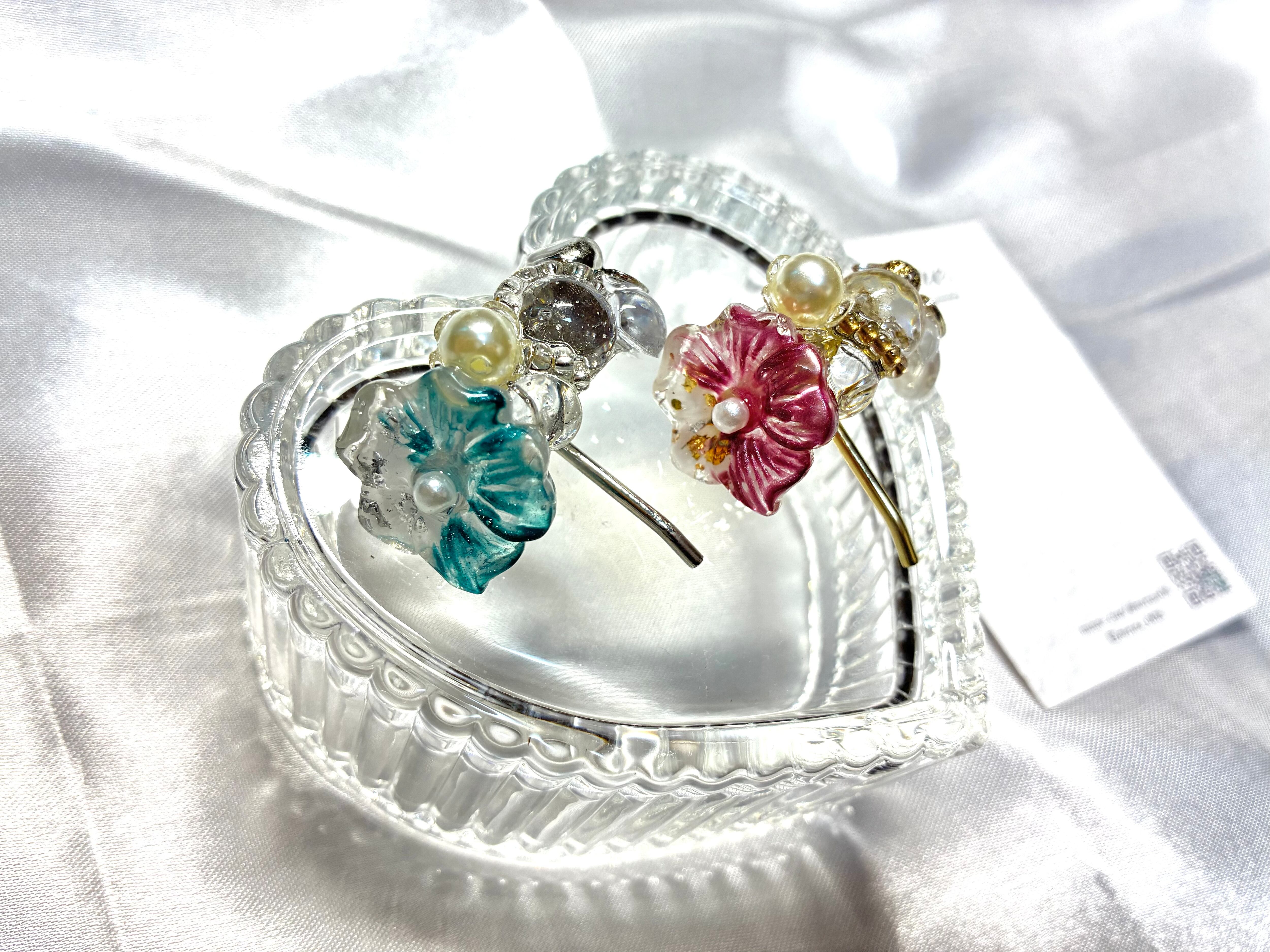 ストーン、レジン、クリアパーツ、ビーズ使用。